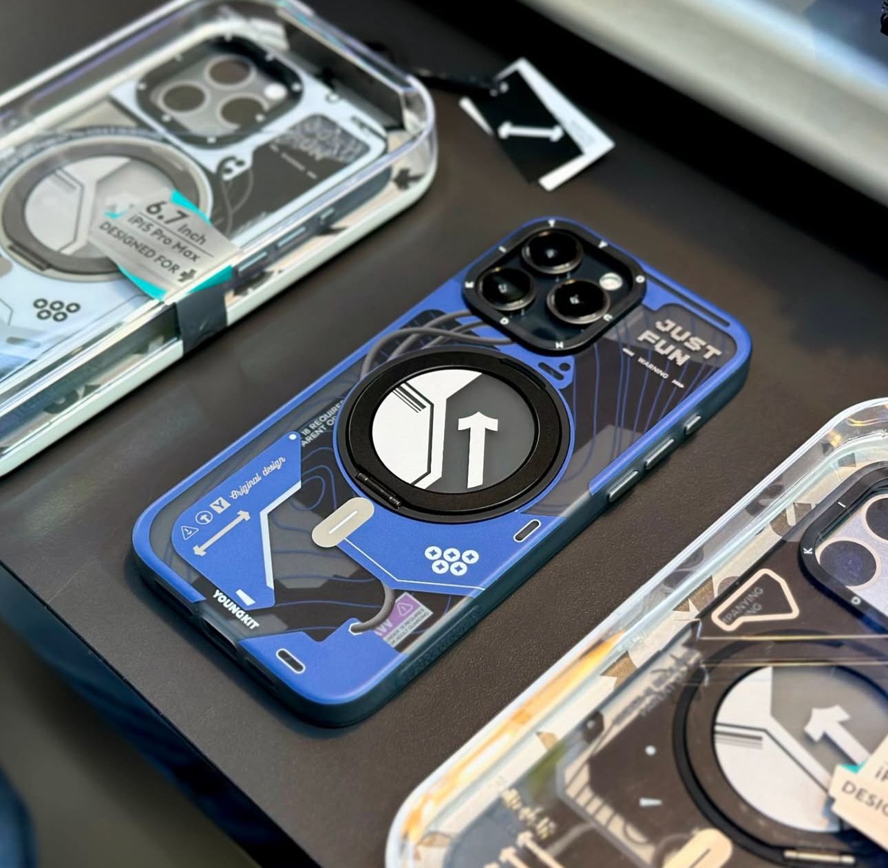 Original Youngkit cyberstyle pattern with 360 degree rotation stand cover for Iphone 16 series