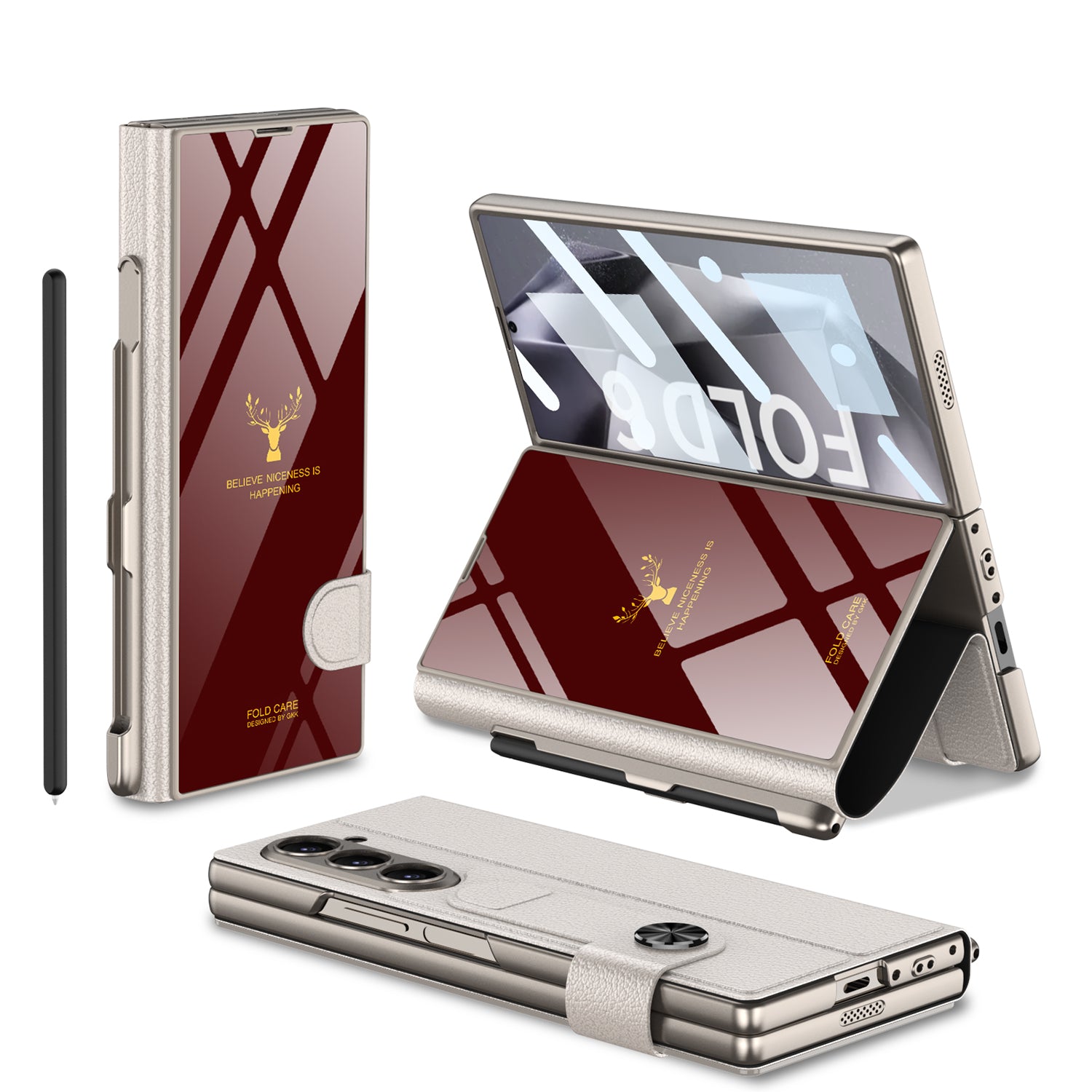 Stylish Electroplating Glass with Pen Holder Cover for Samsung Galaxy Z Fold Series